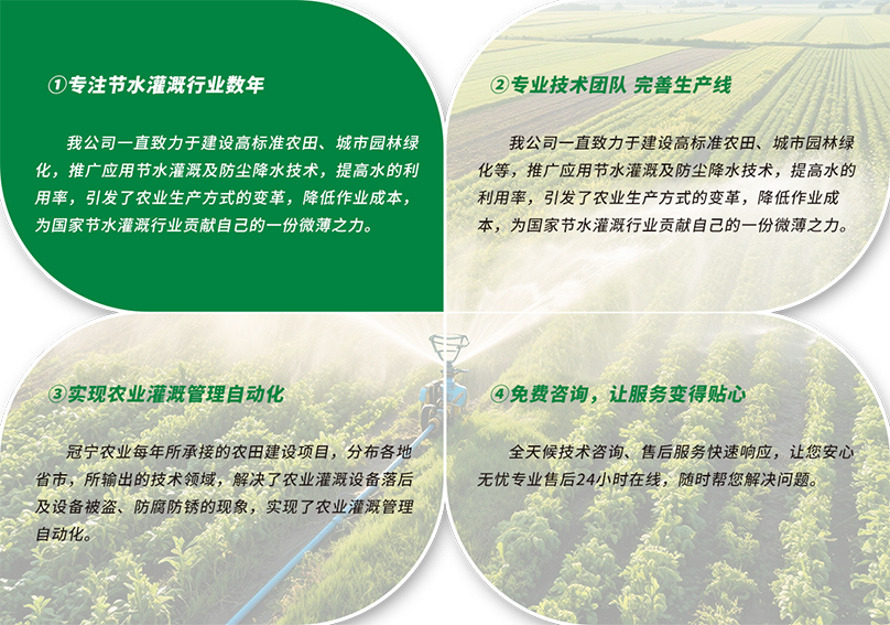 专注节水灌溉行业数年 / 专业技术团队完善生产线 / 实现农业灌溉管理自动化 / 免费咨询,让服务变得贴心